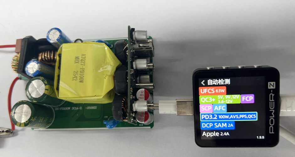 测得USB-C3口支持QC3、QC4+、FCP、SCP、AFC、PD3.0、MTK-PE+2.0、PPS、DCP、Apple 2.4A充电协议。