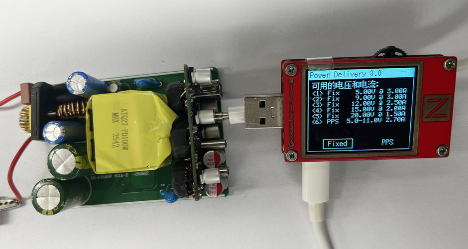 PDO报文显示USB-C1口具备5V3A、9V3A、12V3A、15V3A、20V5A五组固定电压档位,以及5-20V5A一组PPS电压档位。
