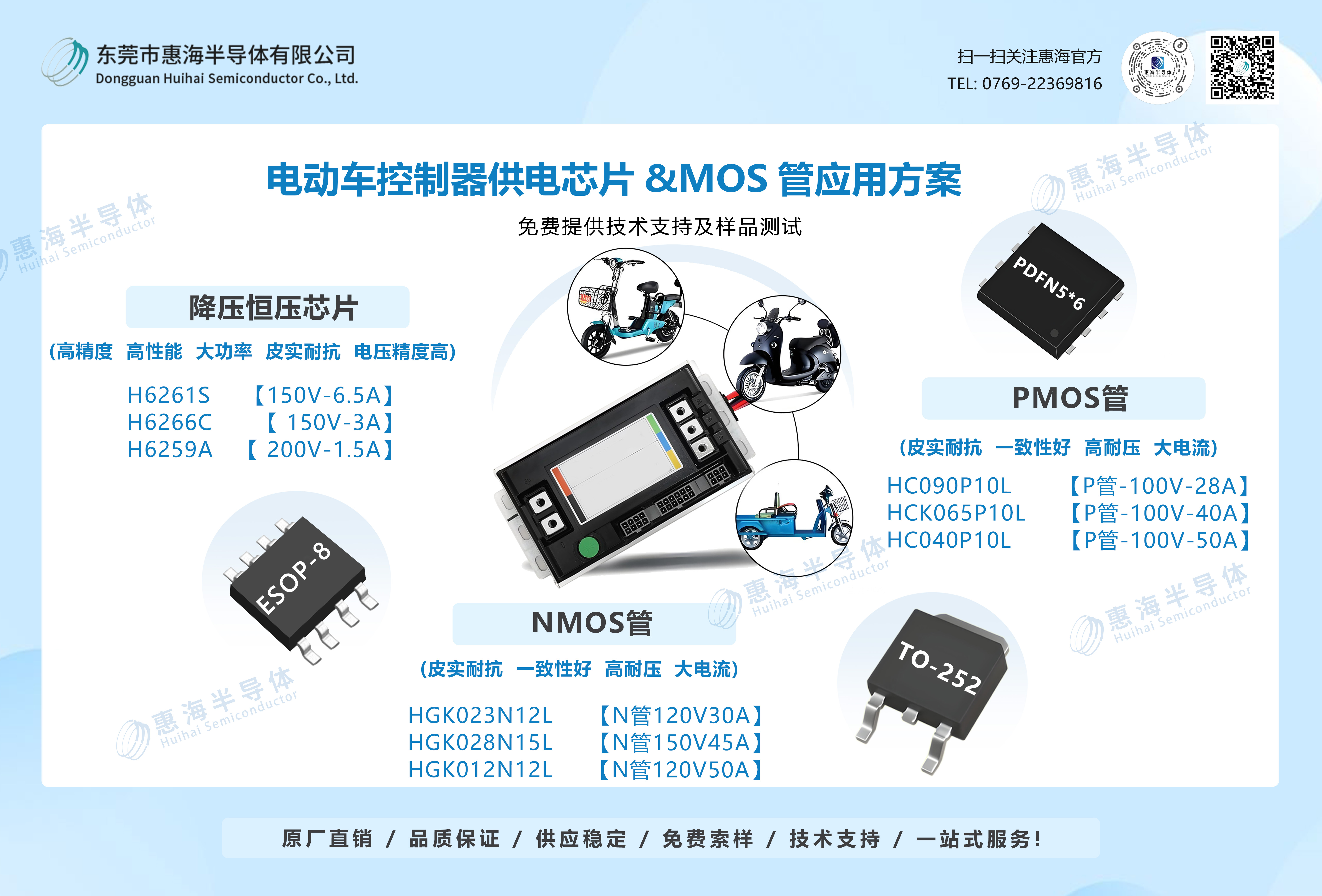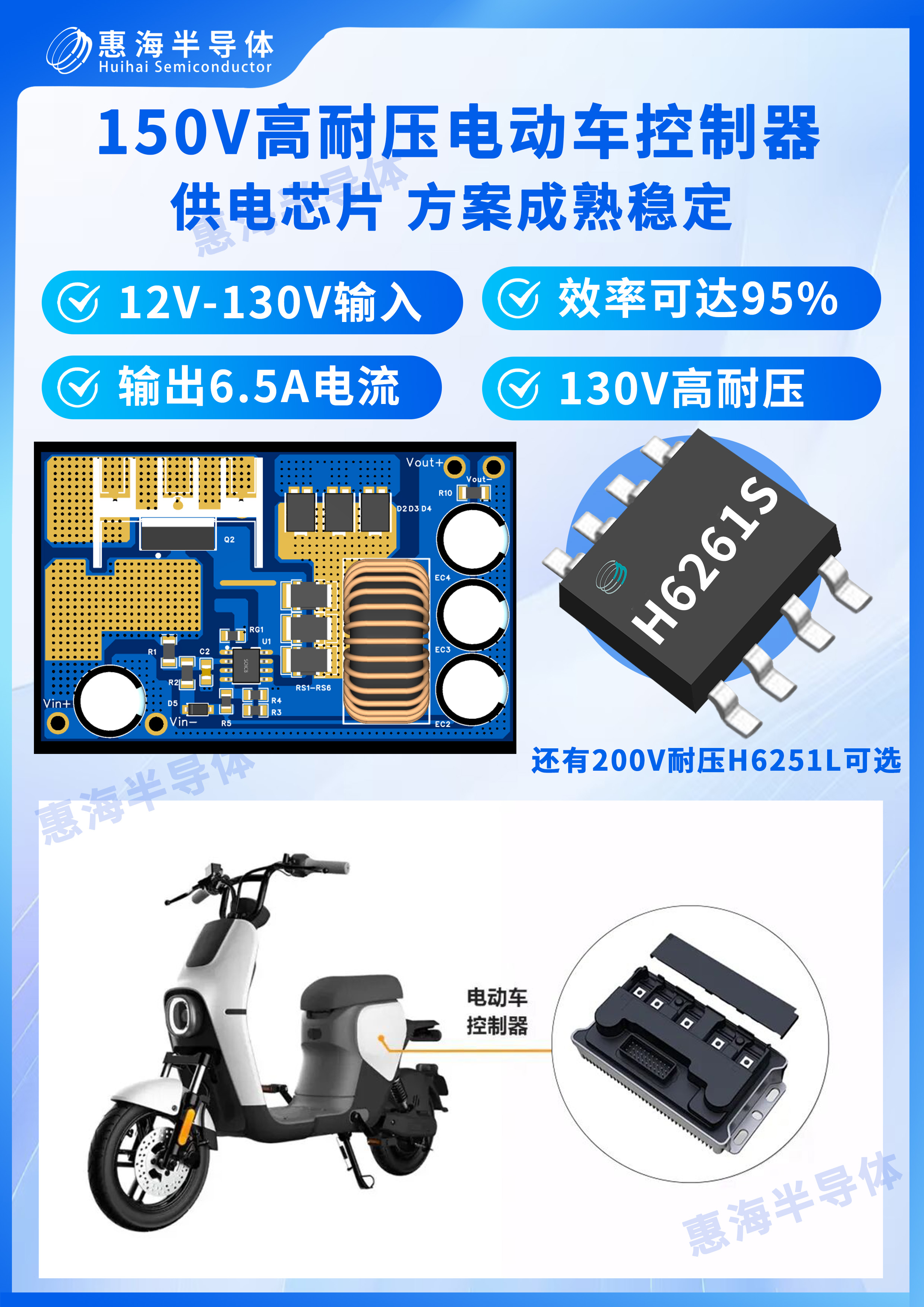 在电动车控制器的供电设计中,高压输入、大电流输出的降压方案一直是工程师关注的重点。尤其是在新国标电动车等移动载具中,供电系统需要面对宽电压输入、高可靠性和复杂工况的考验。今天我们就来聊一聊适用于这类场景的高压降压控制芯片——惠海半导体H6261S。