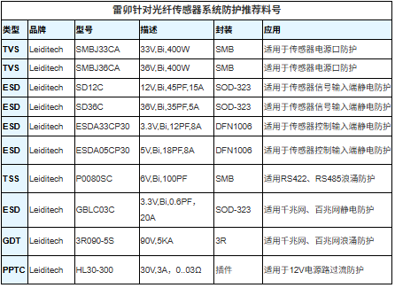 通信接口防护是光纤传感器与外部系统连接的桥梁,也是静电浪涌侵入的主要通道。上海雷卯电子针对不同接口设计差异化多级防护策略: