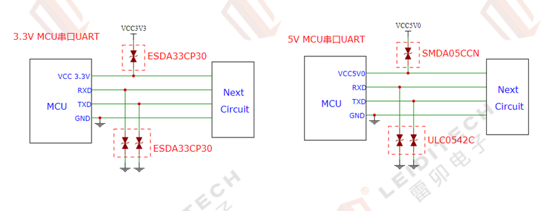 信号输出端:推荐采用ESD二极管如SOD-323系列进行防护,该系列二极管覆盖5V-36V电源电压范围,满足IEC61000-4-2等级4标准(实际参数可达到接触放电30kV空气放电30kV)。