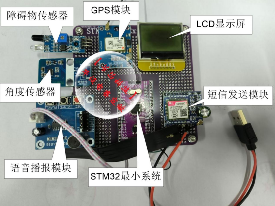 1设计的拐杖能够检测障碍物,并进行语音提示;