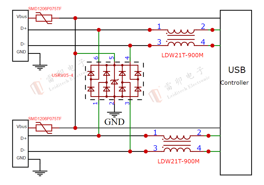 Leiditech雷卯USRV05-4可以替代 MCC美微科SRV05-4L 、SRV05-4C , ST 意法半导体USBLC6-4,HDMIULC6-4SC6. Semtech 升特 SRV05-4.TCT, Panjit 强茂 PJSRV05-4, ONSEMI 安森美SRV05-4,Protek Devices SRV05-4M, Diotech SRV05-4M。
