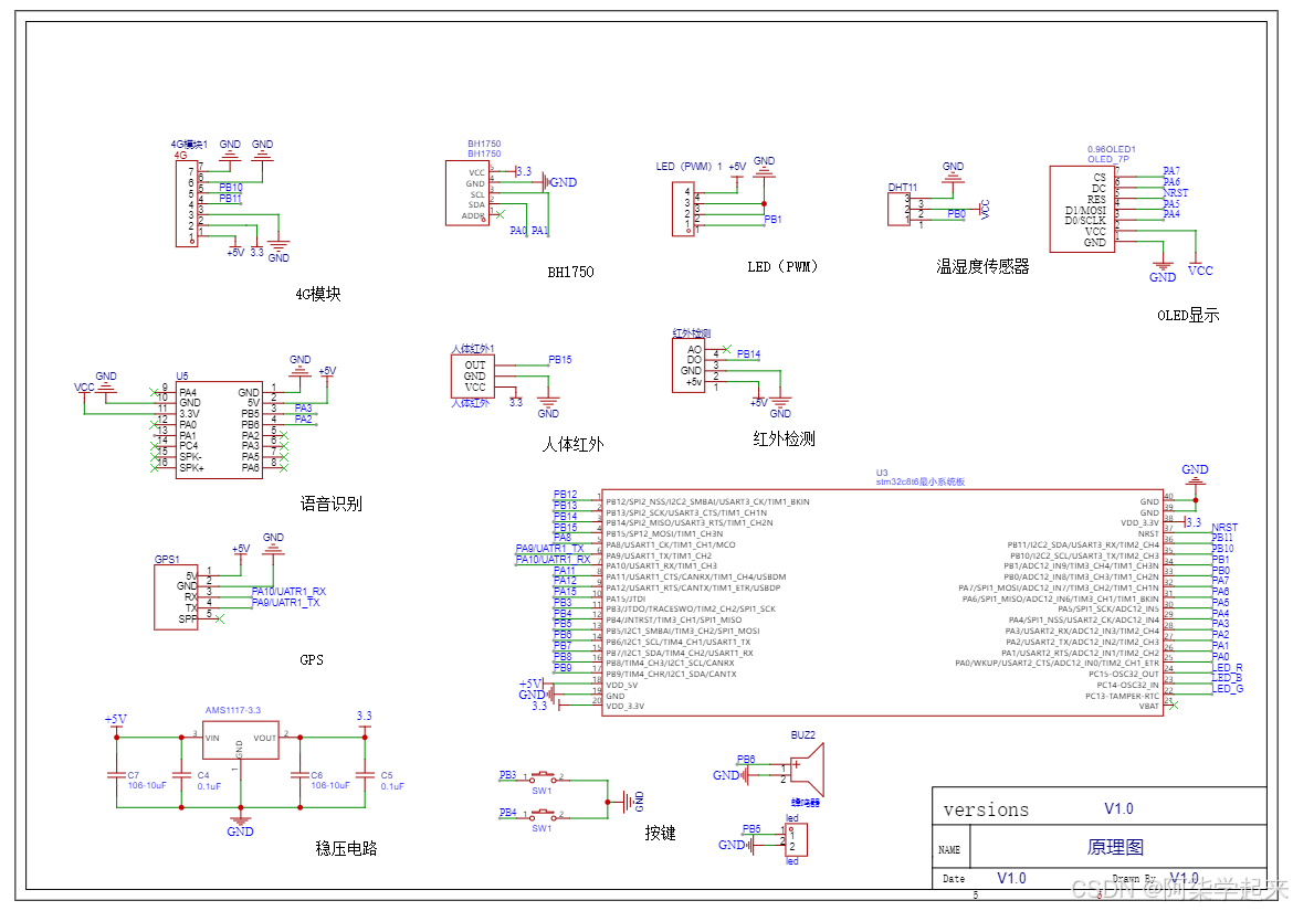 - STM32F103C8T6:用于所有程序的中控和模块数据通信;