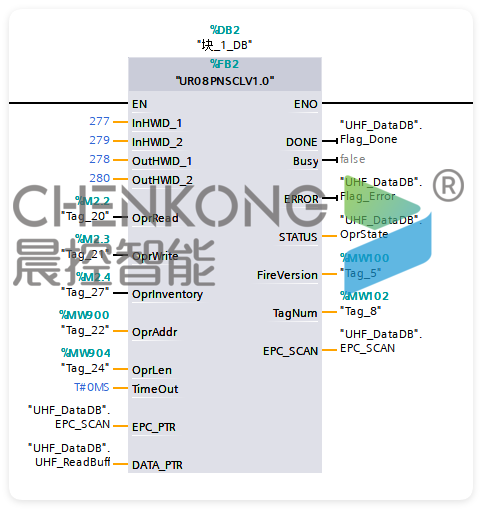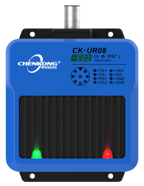 CK-UR08-E02是天线一体式超高频读写器头,工作频率为920MHz~925MHz,符合EPC Global Class l Gen 2/IS0-18000-6C标准,最大输出功率26dBm。读卡器同时支持标准工业通讯协议ProfiNet和 ModBus TCP,方便用户通过集成到PLC等控制系统中。读卡器内部集成了射频部分通信协议,用户只需通过以太网接口接收数据便能完成对标签的读取操作,而无需理解复杂的射频通信协议。