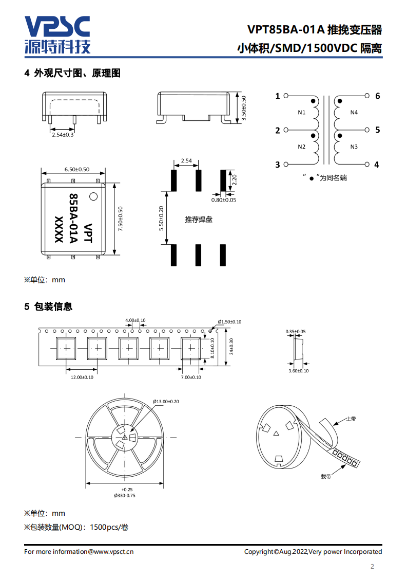 扫码加入VPT85BA-01A 推挽变压器 小体积/SMD/1500VDC 隔离