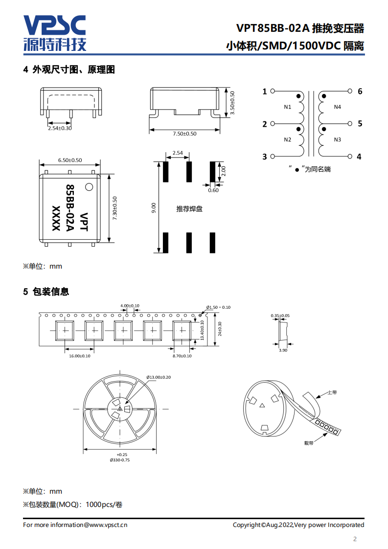 扫码加入VPT85BB-02A 推挽变压器 小体积/SMD/1500VDC 隔离