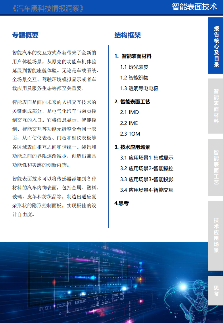 智能表面技术可以将传感器添加到各种材料的汽车内饰表面,包括金属、塑料、玻璃、皮革和纺织品等,制造出适应复杂形状的隐形控制面板,实现极佳的设计自由度。