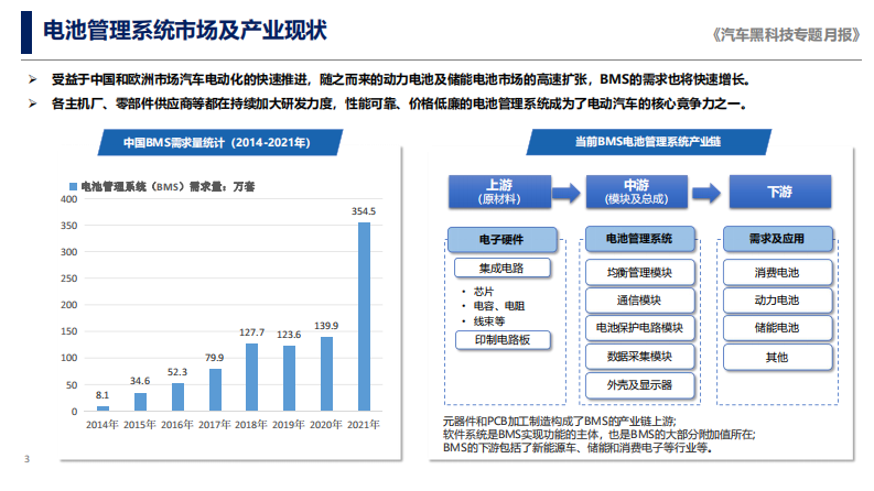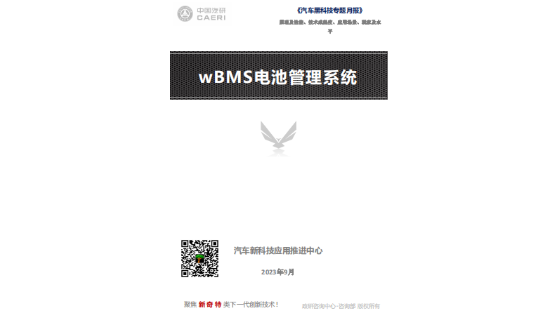 本报告基于当前电池管理系统应用现状展开对wBMS无线电池管理技术的介绍。wBMS(Wireless Battery management system)电池管理系统采用无线通信技术,将原本繁杂的电池系统划分成一个大脑和若干智能节点,智能节点布置在每一个电池模组中间,实现随时查看电池电量、发热、故障等情况的功能,并通过短程无线通信技术对其进行优化和管理。