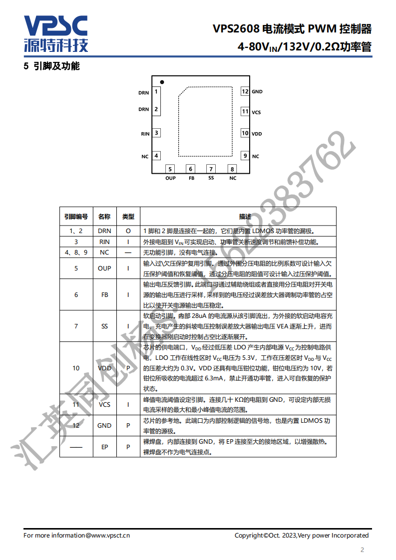 扫码加入VPS2608电流模式PWM控制器 4-80VIN/132V/0.2Ω功率管