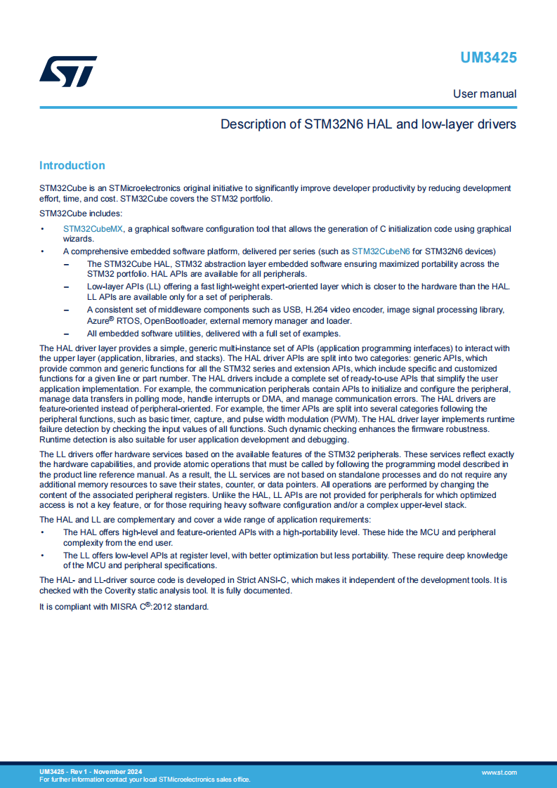 • 一个全面的嵌入式软件平台,按系列提供(例如STM32CubeN6用于STM32N6设备)