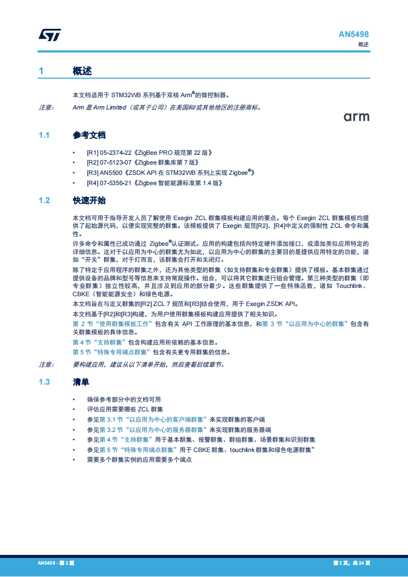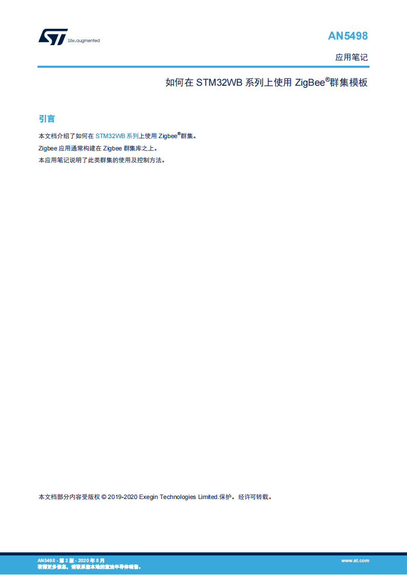 本文档介绍了如何在 STM32WB 系列上使用 Zigbee®群集。