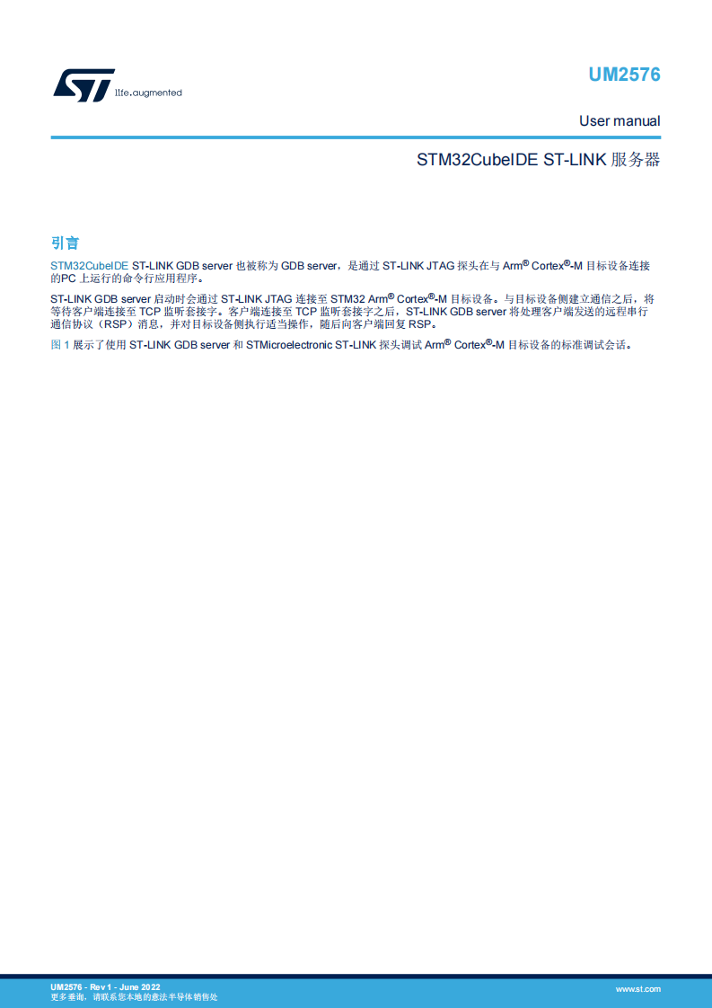 STM32CubeIDE ST-LINK GDB server 也被称为 GDB server,是通过 ST-LINK JTAG 探头在与 Arm® Cortex®-M 目标设备连接的PC 上运行的命令行应用程序。