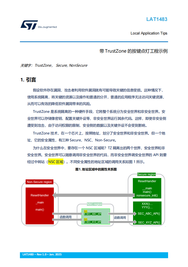 TrustZone 技术,在一个芯片上,按照地址,划分了安全世界和非安全世界。但一个地址,它的安全属性,有三种 Secure、NSC、Non-Secure。
