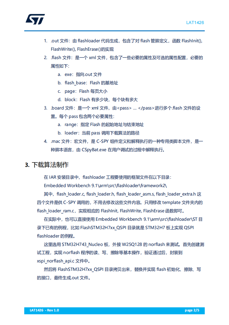 在实际中,也可以直接使用 Embedded Workbench 9.1armsrcflashloaderST 目录下已有的例程,比如 FlashSTM32H7xx_QSPI 目录就是 STM32H7 板上实现 QSPIflashloader 的例程。