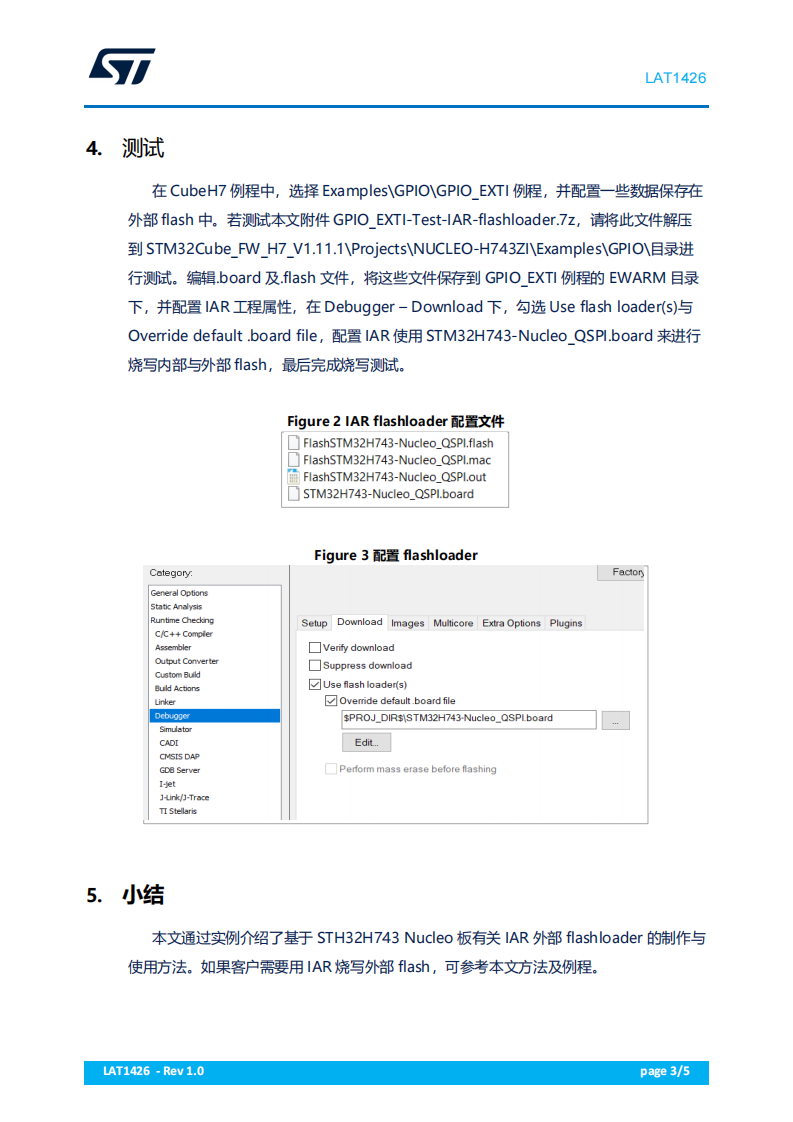 本文通过实例介绍了基于 STH32H743 Nucleo 板有关 IAR 外部 flashloader 的制作与使用方法。如果客户需要用 IAR 烧写外部 flash,可参考本文方法及例程。