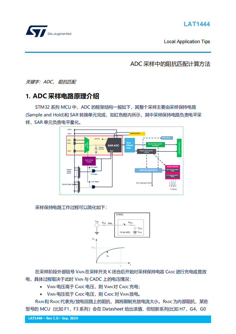 本文对 SAR 型 ADC 的架构和采样电路的工作原理进行了简单的介绍,在实际的 ADC 应用中,如果输入阻抗与采样时间不匹配,就无法得到准确的采样结果,本文针对此问题给出了如何保证阻抗匹配,以及如何通过示波器的观测采样波形判断输入阻抗和采样时间的选择是否合理的方法。