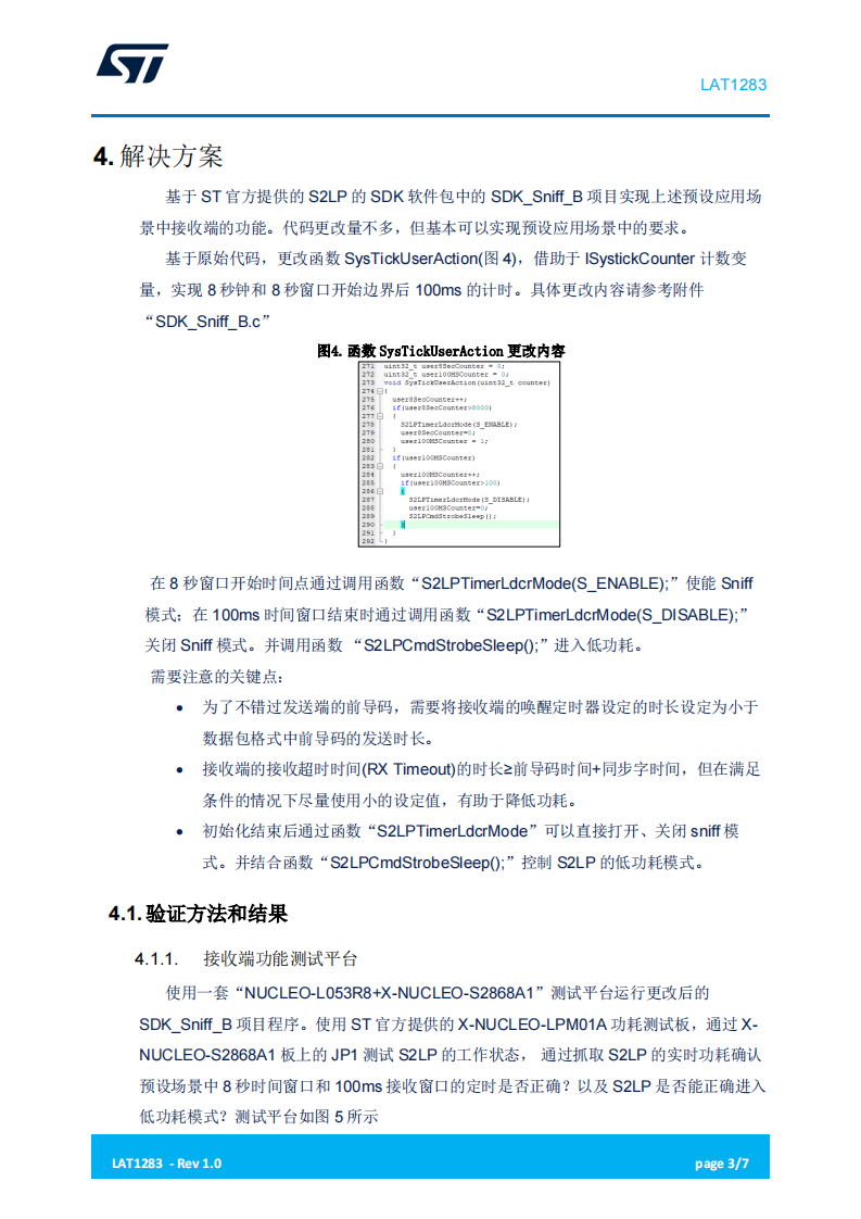 S2LP 支持的 LDC 模式和 sniff 模式都是低功耗模式,LDC 模式支持同步通讯的场景,Sniff 模式支持异步通讯的模式。客户基于自己的应用场景,可以选择合适的模式。另外通过附加的定时控制 S2LP 在 sniff 模式下的工作时长可以进一步降低 S2LP 的功耗。