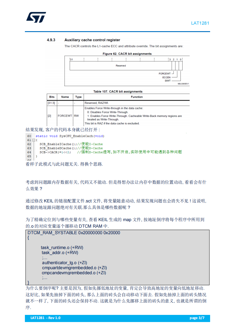 本文最终问题的真相虽有点匪夷所思, 但这正反映了当前国内软件应用上的混乱情况. 本文所描述的问题根本原因虽然很另类, 但所涉及到的方法却对开发者有一定的参考意义, 在不能动代码的情况下, 需要挪动数据的位置, 这就必须对编译器有一定的了解. 虽也不至于太难, 但对很多开发都来说, 对编译器的了解未必很深, 因此, 一开始很多人就会卡住。另外, 对 MPU 的了解也是一大门槛。
