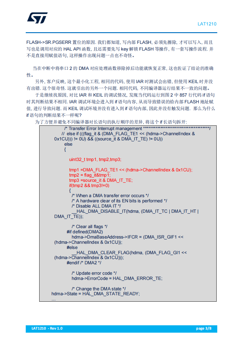正常来讲, 任何芯片存在应用局限是正常的。对于 ST,一方面会正式地将所有已知 bug或应用局限放入到勘误手册中公示, 大家需要注意使用最新版勘误手册;另一方面,对于 ST 量产芯片,因本身缺陷导致的问题的概率非常低。事实上,绝大多数问题都来自我们自身的应用,遇到问题若简单的基于芯片品质来回猜疑非常不利于开发者静下心来查找问题原因。 其实,面对问题时,我们很多人欠缺的并不是多么高深的水平,而是一颗冷静、自信并富有条理的心。