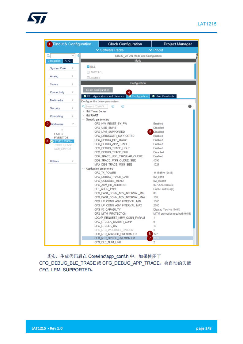 在以下情况下,还需要使能 BLE 并进行开发,调试时可配置 STM32WB 使用 HSE 做RF Wakeup 和 RTC 的时钟源。