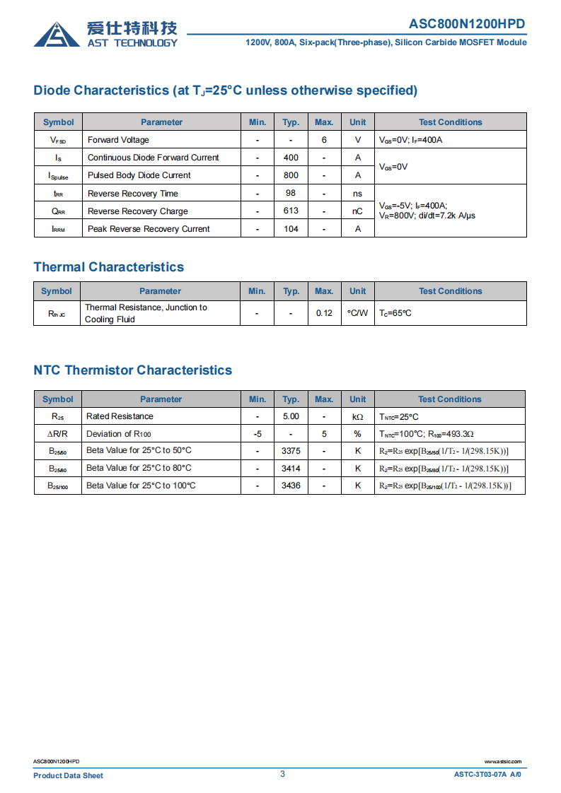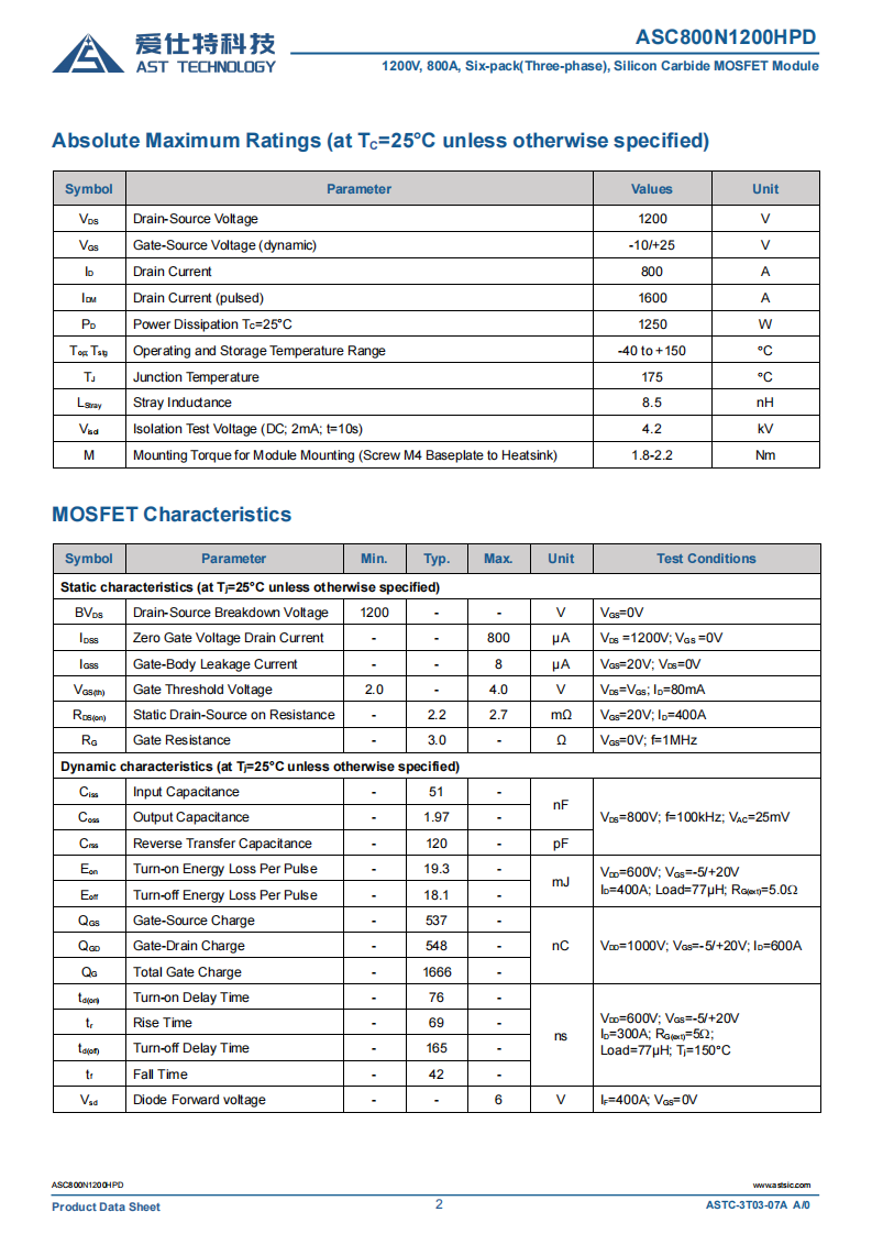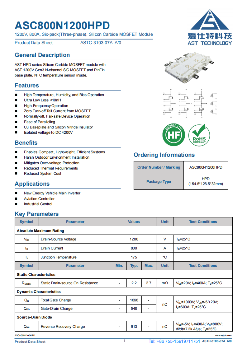 ASC800N1200HPD三相全桥碳化硅(SiC)功率模块