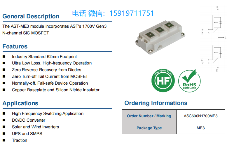 ME3 (62mm)系列碳化硅(SiC)功率模块