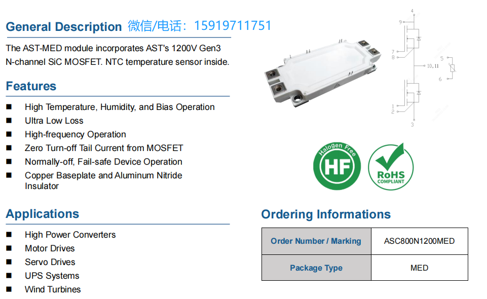 ASC800N1200MED碳化硅SiC模块1200V800A半桥