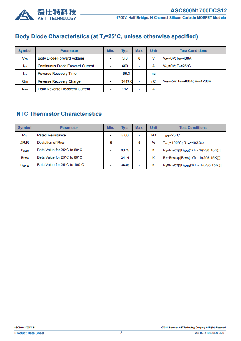4. 参数范围: VDS:1700V ID:800A RDS(on) :3.25mΩ