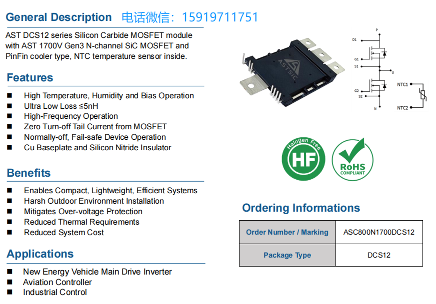 扫码加入ASC800N1700DCS12碳化硅SiC模块半桥1700V800A