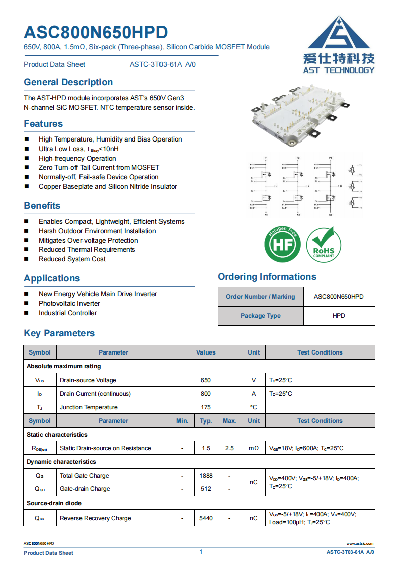 ASC800N650HPD碳化硅模块650V