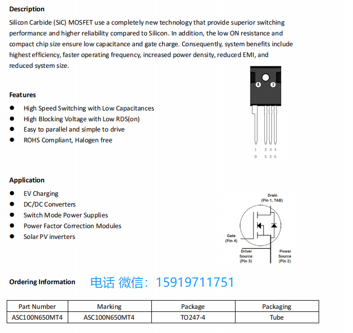 扫码加入ASC100N650MT4碳化硅(SiC)MOS