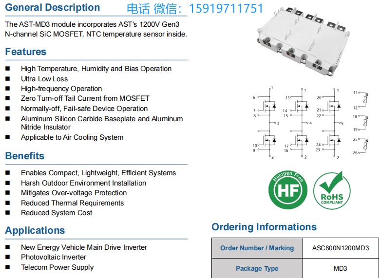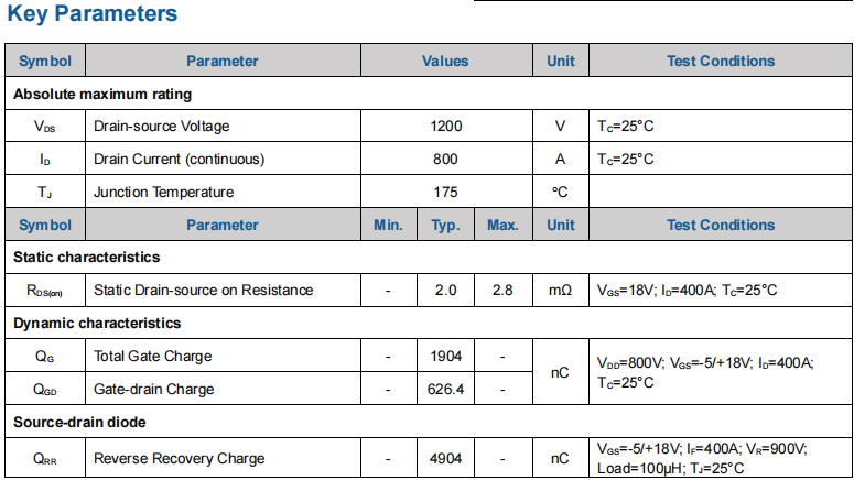 3. 参数范围: VDS:1200V ID:2800A RDS(on) :2mΩ