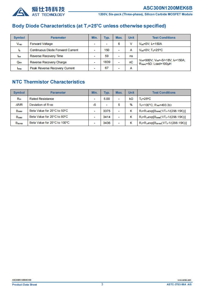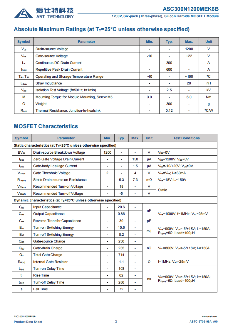 4. 参数: VDS:1200V ID:300A RDS(on) :5.35mΩ