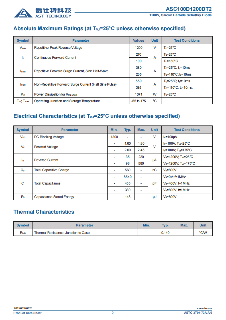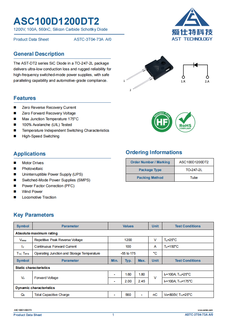 扫码加入ASC100D1200DT2碳化硅二极管1200V100A的百安通流,直击多管并联核心痛点