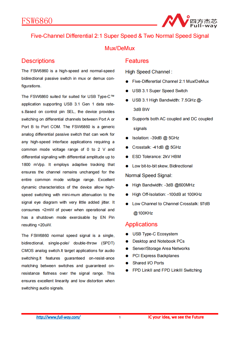 FSW6860是一款高速、常速双向无源开关,支持多路或多路配置。