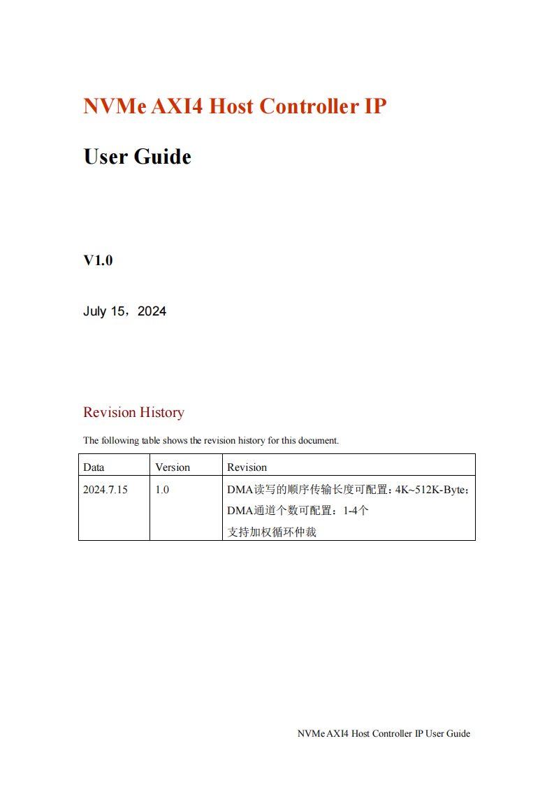 NVMe AXI4 Host Controller IP作为一个对PCIe SSD的高性能存储控制器,不但提供对PCIe SSD的配置管理功能,而且提供对PCIe SSD的IO(Page)读写以及DMA读写功能。