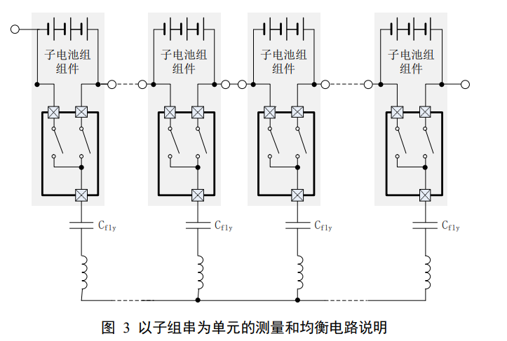 当子组串内配备独立的测量和均衡电路时,子组串间还需要提供跨子组串转移电荷的能力。图3是以子组串为单元的均衡电路,该电路由圣邦微电子提出(专利已登记,目前在审核中),对照方案可见参考资料[1]的综述。