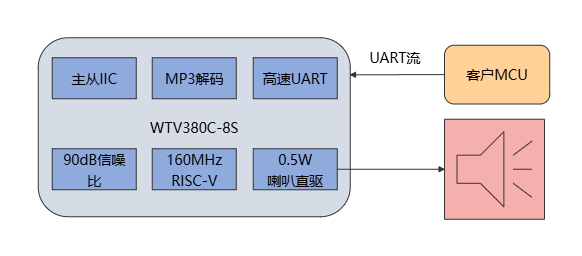 今天我们要聊的是MP3音频解码芯片WTV380C,一颗支持流式传输的MP3音频解码芯片,内置FLASH储存和D类功放,支持边下边播,主要针对MCU资源占用过高的以及音质差的解决方案。下面我们一起看看WTV380C有哪些具体的能力吧。