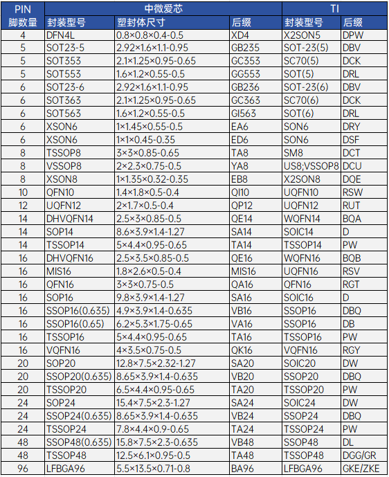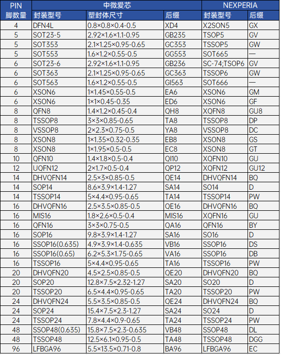 >>中微爱芯—NEXPERIA—TI逻辑芯片封装交叉参考表