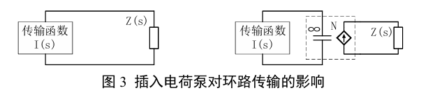 图3表达了串入固比电荷泵对环路传输函数的影响。以电流传输计算,电荷泵简单等效为电流等比例放大;响应谱形状不变,3dB带宽、穿越频率和相位裕度均因引入增益N拉高。配合稳压电源串入电荷泵后,稳压采样点后置到电荷泵之后,相当于电压扰动采样增益下降到1/N,稳压电源输出电流和等效负载下降,环路带宽仍表现为拉高7。