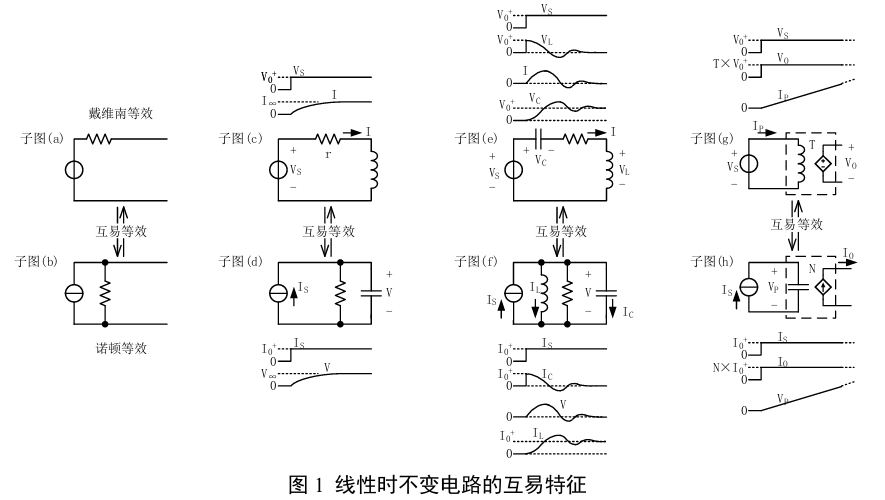 线性时不变网络中电感和电容有拓扑互易性,采用电感实现的电路功能均可以用电容实现对等的功能。交换电容和电感,或将带有电感/电容的网孔代换为电容/电感支路,则电压的解可以代换为电流的解;这种可代换性也包括变比为N的电荷泵等效为匝比为T的变压器。这些互易特征的电路示意可参考图1。