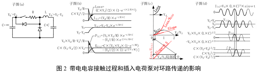 电荷泵有丰富的结构形态3实现不同功能和改变应力特征;利用电荷泵降低输入电压可降低电感开关电源开关节点寄生电容充放带来的能量消耗,或者将低压大电流转换到舒适的电压和电流。图1子图(c)和子图(d)反映了在电感电路和电容电路中串联或并联电阻的必要性;没有电阻,电流或电压有可能会发散到无穷大。图2和图1用来说明需要关注的两个关键特征,即功率在传递过程中和在部分谐振中的影响。