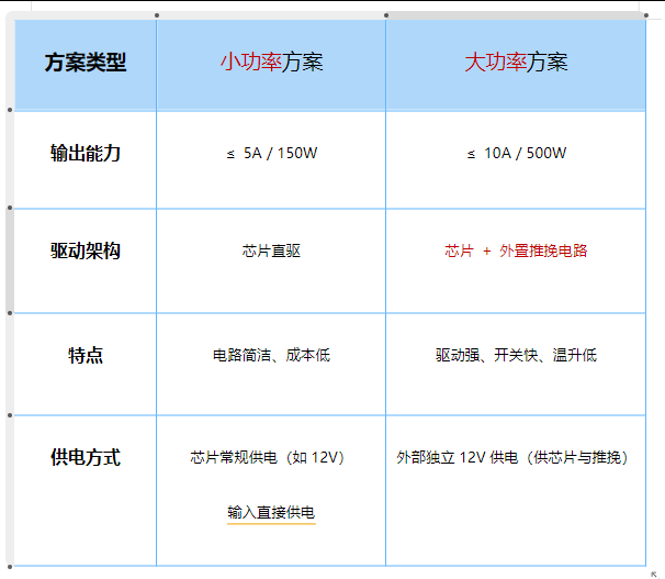 - 功率>150W,或对效率、温升、开关速度有较高要求,应使用推挽驱动方案,以确保系统高性能与高可靠性。