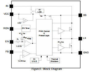 芯片输入欠压锁定阈值为 6.3V,低电压即可完成启动,EN 引脚具备 1.225V 精准启动阈值与 0.25V 迟滞,关断电流最大仅 30μA,满足高压设备低功耗待机与启停需求。