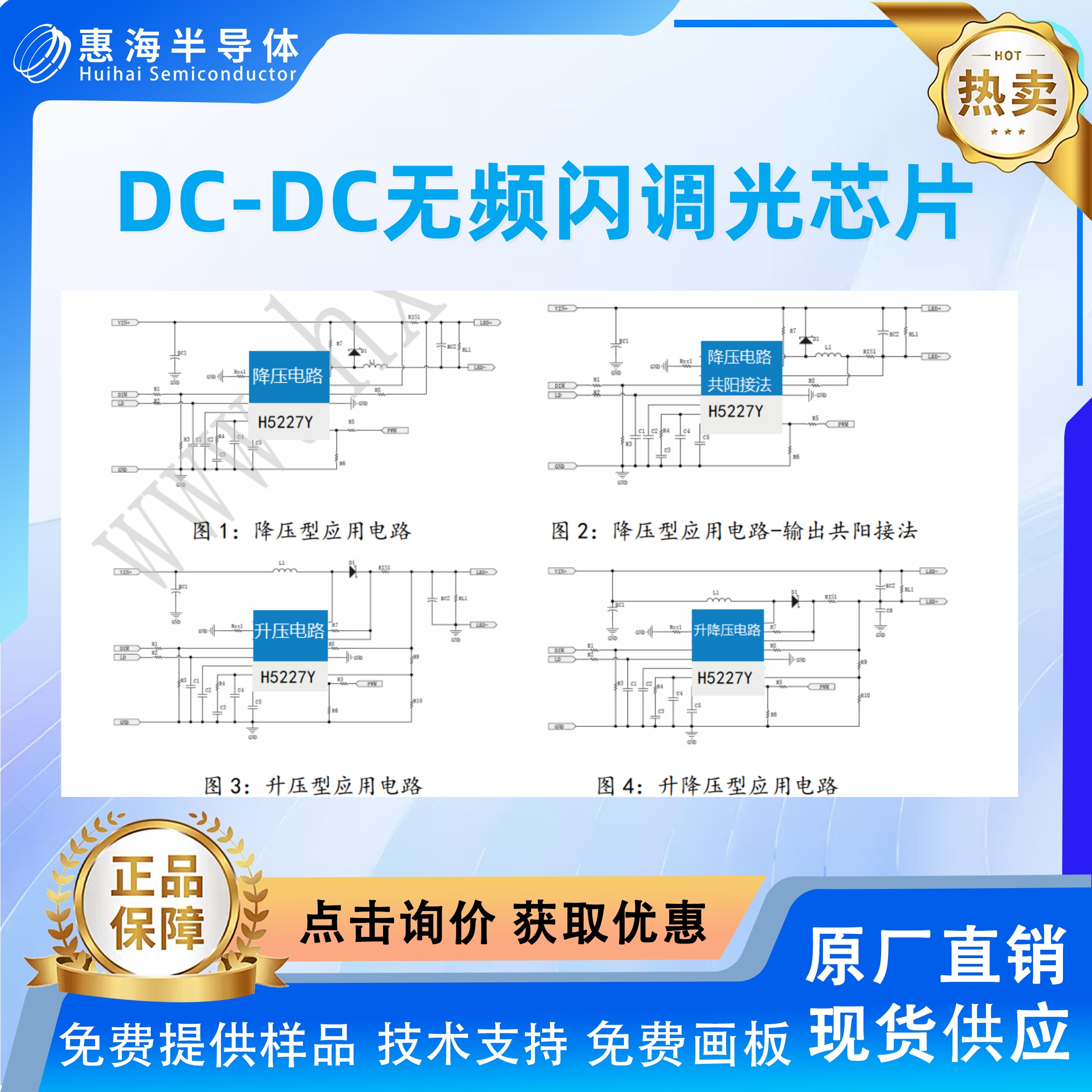 H5227Y 是款调光特性良好的宽范围调光比且无频闪调光的 LED 恒流驱动器。支持降压、升压和升降压拓扑的应用,具有 6.5~75V宽输入工作电压范围,采用连续电流模式(CCM)为高亮度 LED 供电。
