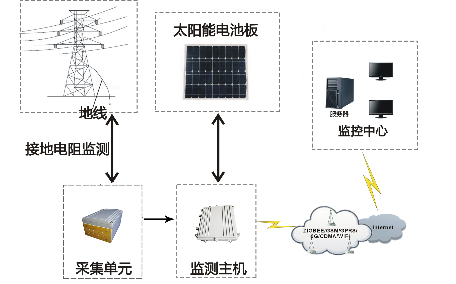 故高压输电线路杆塔接地电阻的监测变得尤为重要,我司自主研发生产的FH-900C型高压输电线路杆塔接地电阻在线监测系统,通过对杆塔接地电阻的分析和无线通信技术,实现对高压输电杆塔接地电阻的实时监测,并通过4G网络及时将预/告警信息发送给监控中心,提醒线路运行负责人对线路运行状况予以关注并采取相应处置措施。