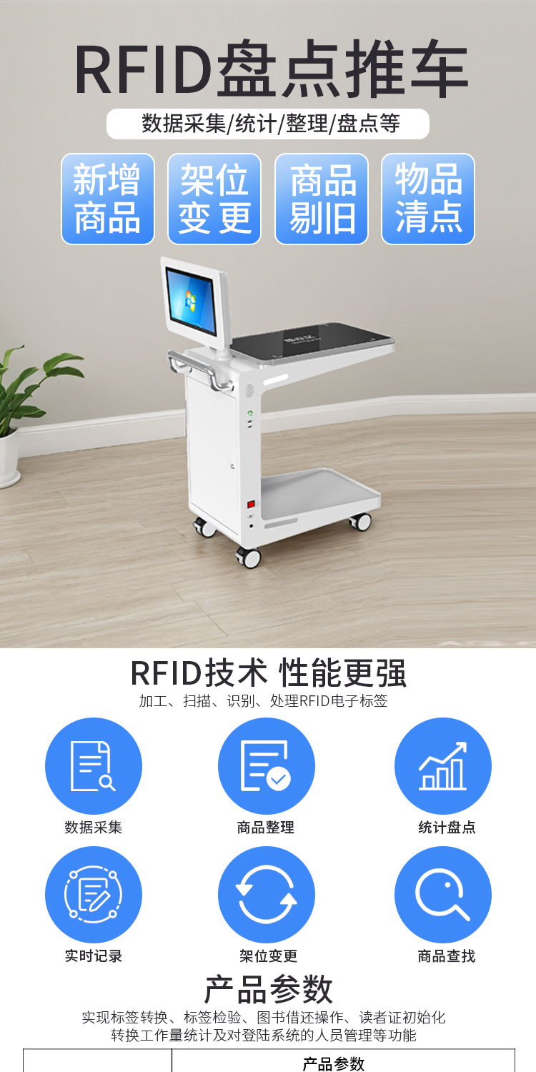 无人仓库超市RFID智能盘点车移动式商品库存管理自动补货拣货推车