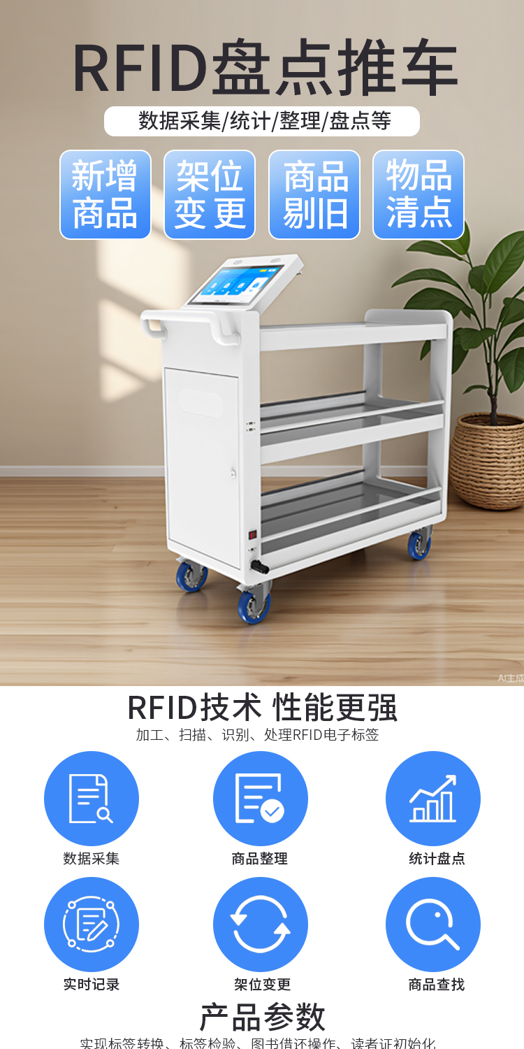 RFID智能盘点车医院药房手术室专用智能移动推车自动感应盘点车