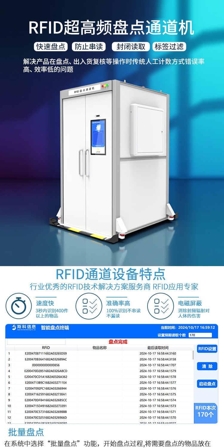 RFID智能通道盘点机电力物资仓库电表管理设备多标签扫描盘点终端